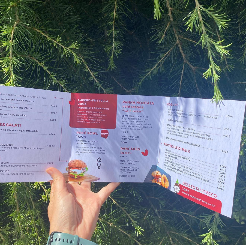 Menù realizzato ad-hoc per Lo Baraquein di Valtournenche